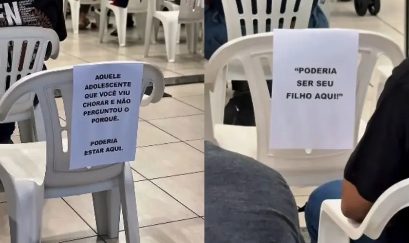 Durante un servicio, la Iglesia de Cristo dejó sillas vacías con carteles que contenían frases para provocar la reflexión entre los fieles:
